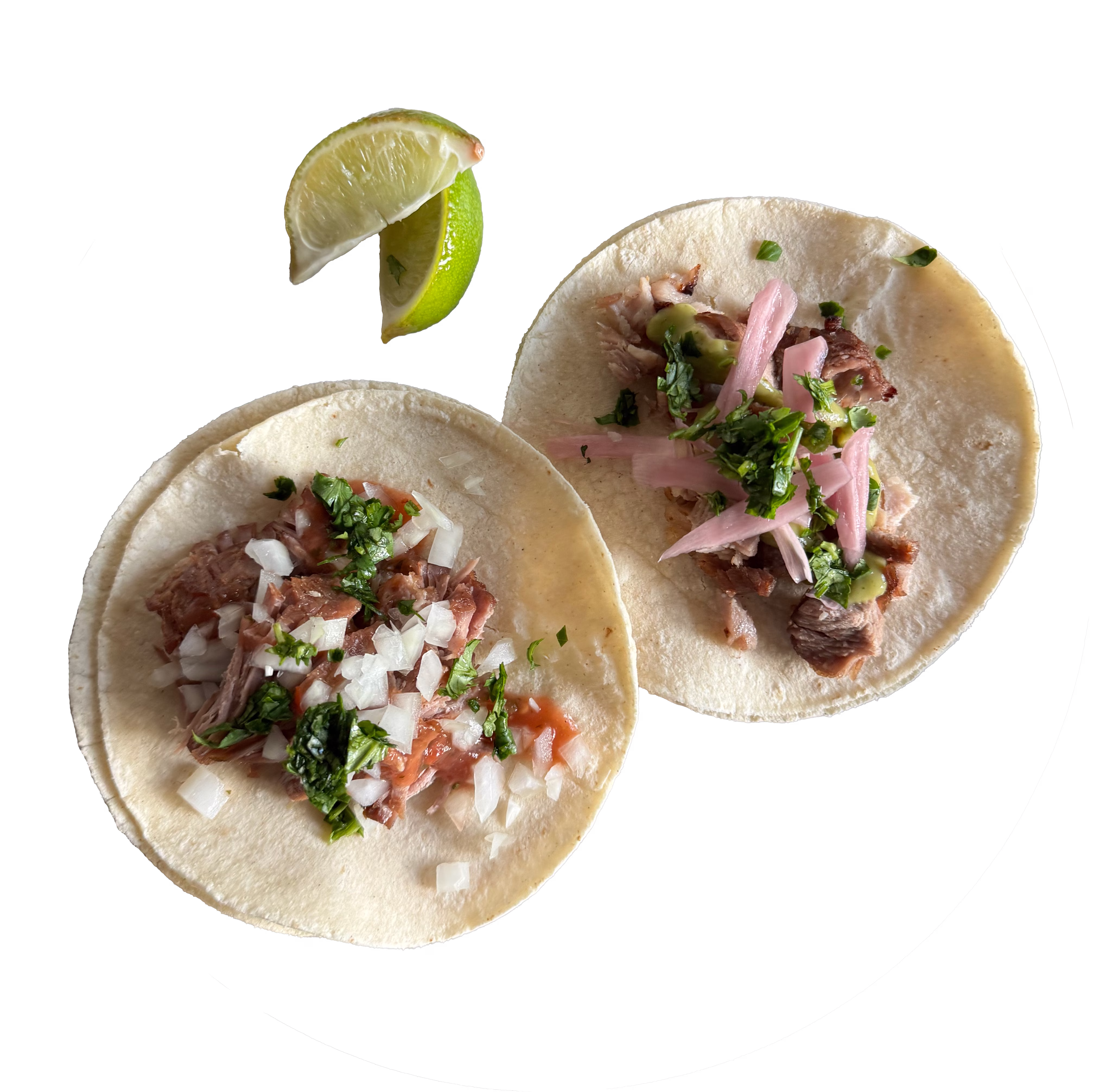 Carnitas (literally meaning “little pieces of meat”) are made by simmering pork its own fat, and are a must-have when I make tacos. Making carnitas from scratch is not a quick process, but it is worth the wait. I cut a whole pork shoulder into pieces and braise the meat for two hours in lard with onion, orange, coca cola, evaporated milk, garlic, oregano, bay leaf, and cumin (along the lines of this example). If you desire crispiness, sear the pork after braising and before shredding.